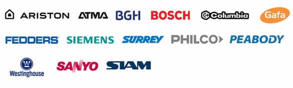 Whirlpool Drean Candy General Electric Mabe Patrick Ariston Atma BGH Bosch Columbia Electra Electrolux Eslabón de Lujo Frigidaire Fedders Gafa LG Longvie Patriot Peabody Philco Samsung Sanyo Siam Siemens Surrey Whestinghouse